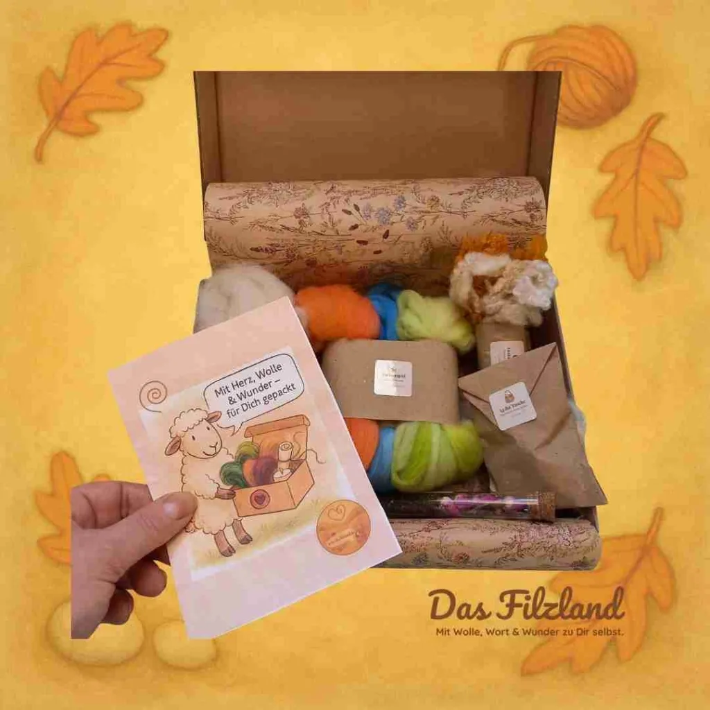 - gedruckte Filzanleitung mit: einer kleinen Geschichte aus dem Filzland und einer kreativen Idee